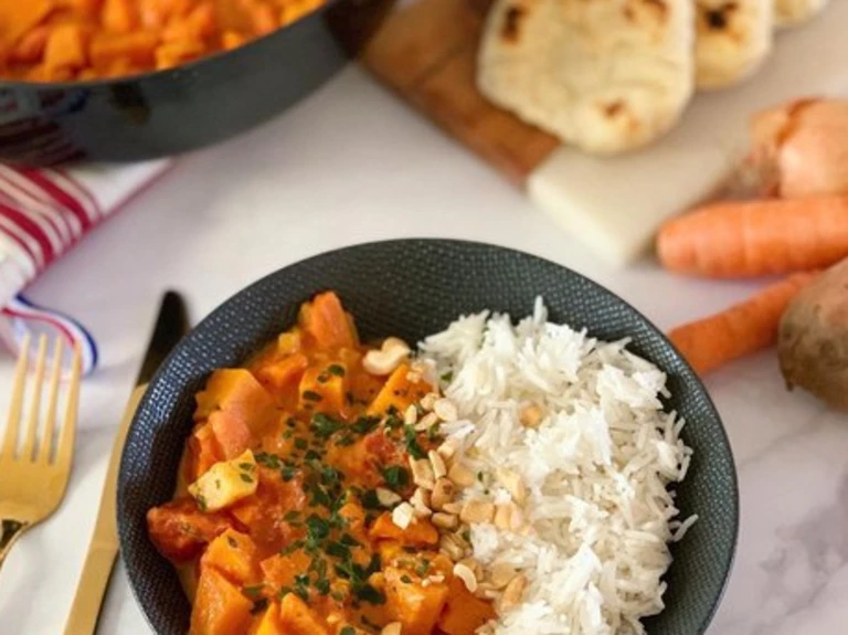 Une recette végétarienne succulente, qui peut se manger avec un féculent (riz, pâtes, quinoa, boulgour). Mais elle peut également servir d’accompagnement pour un poisson ou une viande blanche.