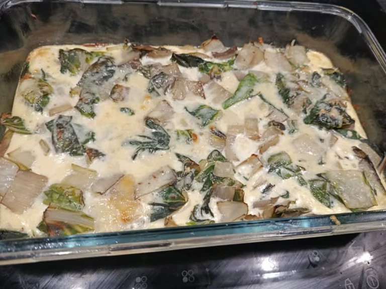 1 - Coupez les blettes (cardes et feuilles) en tronçons. Faites les blanchir dans de l'eau salée environ 10 minutes Égouttez bien.